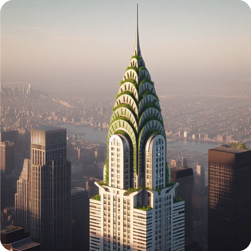 This vision of the Chrysler Building in New York with a green roof is a notable transformation for this business office hub, currently owned by SIGNA Group and RFR Holding LLC. Although there is limited space for a green roof due to its design, this concept mixes the building's historic charm with contemporary environmental considerations, offering a greener urban skyline. Yet, there’s an argument to be made about how the Art Deco design of the stainless steel cladding might clash with the greenery.