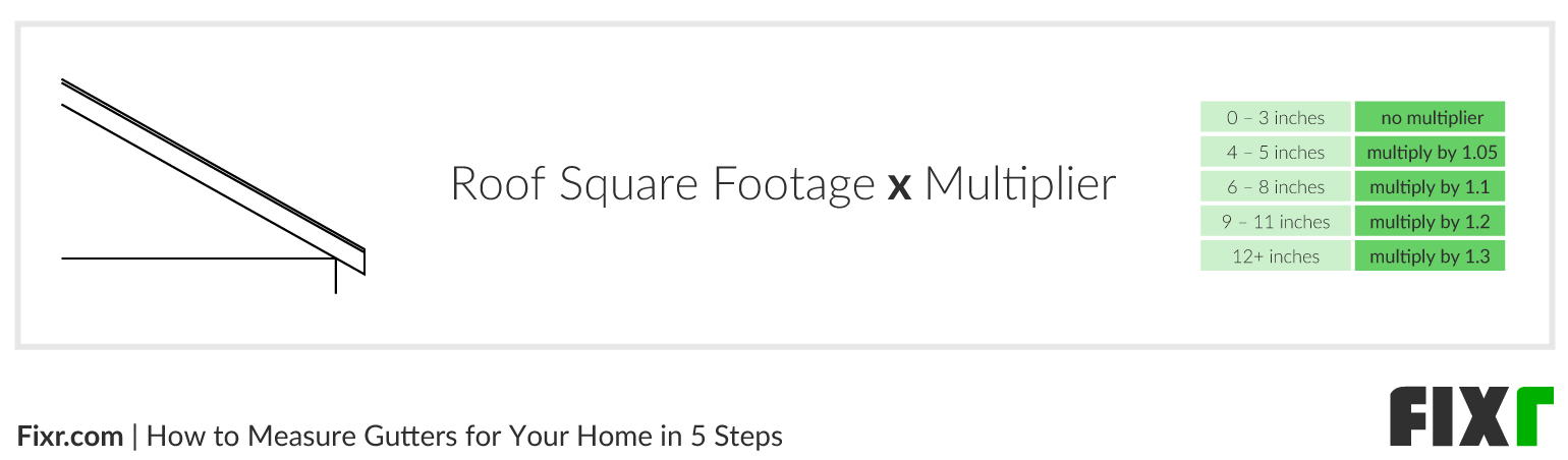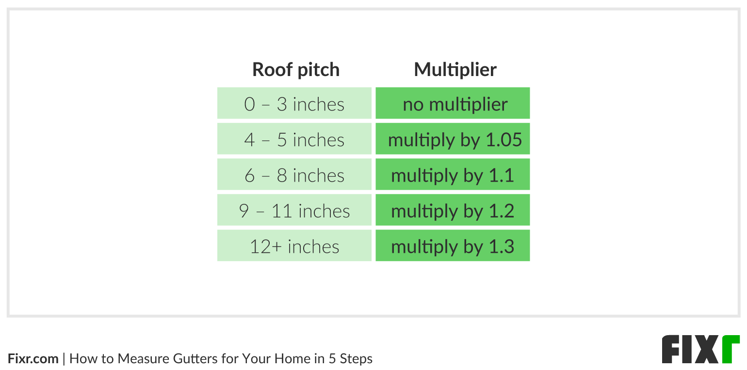 To make this process simpler, we have created a 5-step guide to ensure you get the correct sized gutter for your home. In the above graphic, you can see the necessary steps, and below we break down and explain each step in more detail. Assuming that your area has an average amount of rainfall, you can use these calculations to determine the average size of gutters you need. Follow the five steps below to find out how to measure gutters for your home.