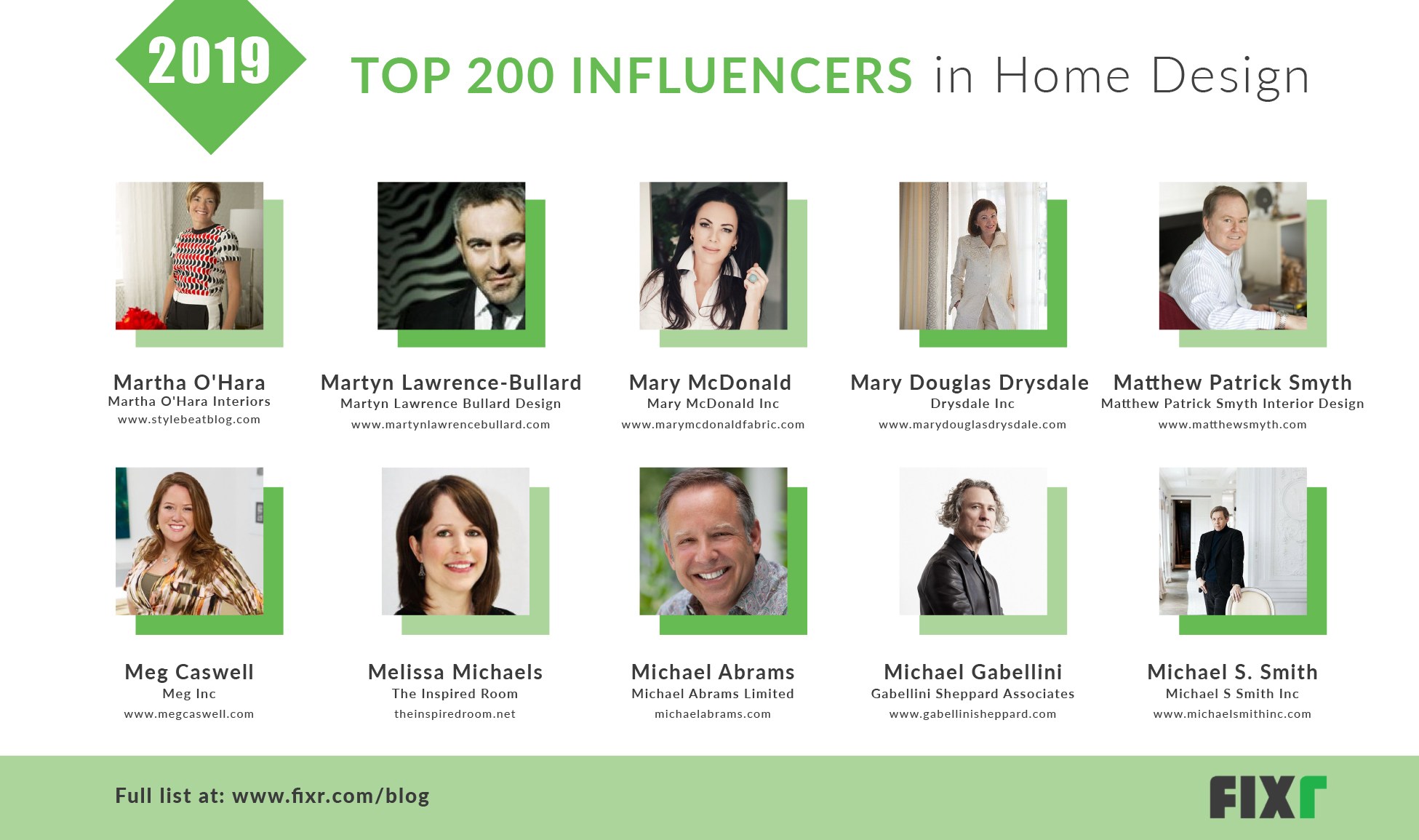 In 2017, we brought you the Top 200 Influencers in the home design industry. Home design and home designers have undergone changes in the last two years, which is why we updated this list to include the Top 200 Influencers for 2019.