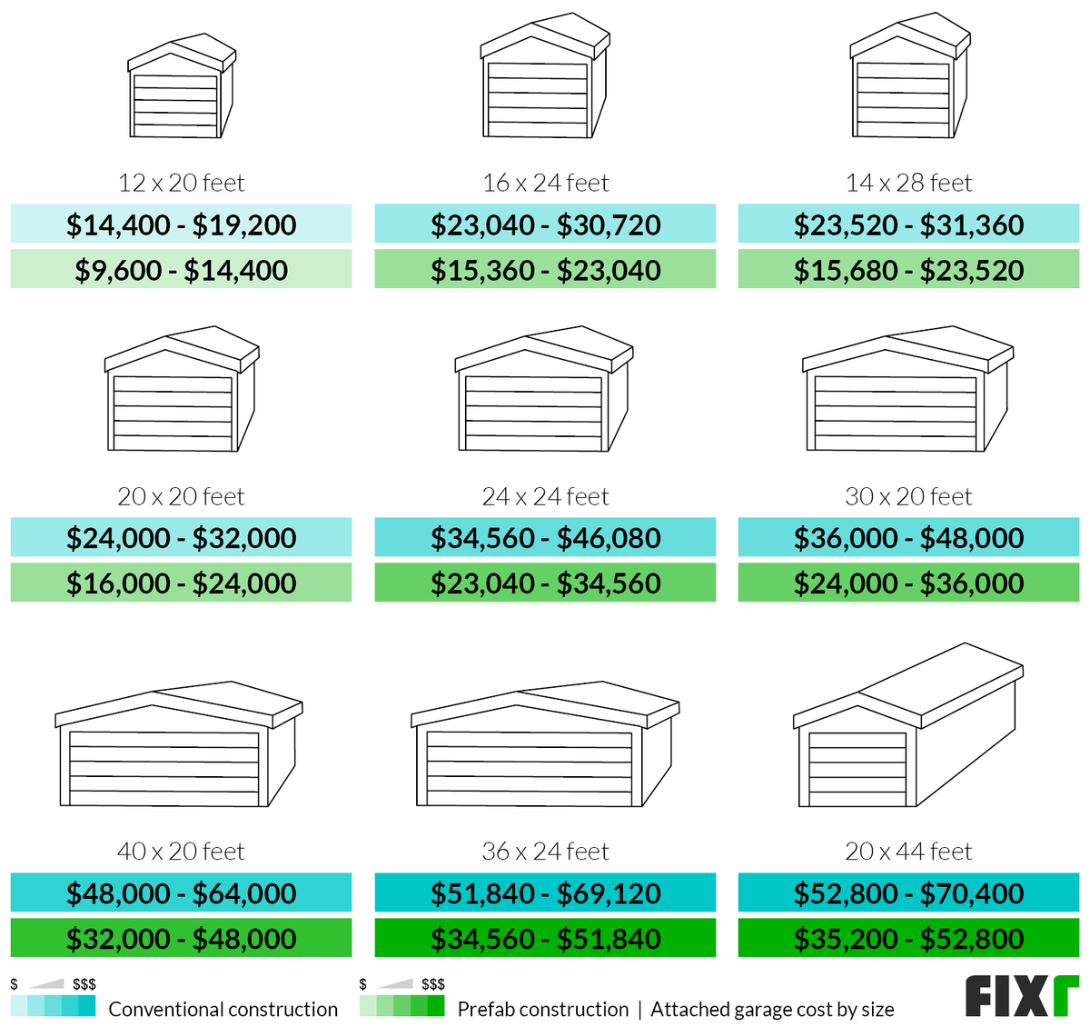 Cost to Build a 12 x 20, 16 x 24, 14 x 28, 20 x 20, 24 x 24, 30 x 20, 40 x 20, 36 x 24, and 20 x 44-Foot Conventional and Prefab Attached Garage (mobile)