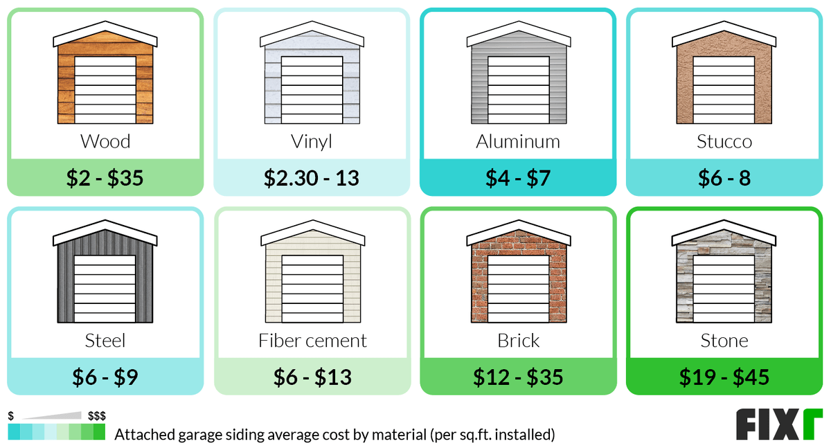 Cost per Sq.Ft. to Install Wood, Vinyl, Aluminum, Stucco, Steel, Fiber Cement, Brick, and Stone Attached Garage Siding (mobile)