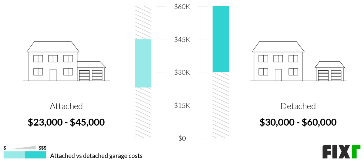 Of the two, detached garages are more costly. Attached ones use one wall of your home and can often use existing driveways, so they require less material and work to erect. However, there can be overlapping costs between the two structures. Below are the average costs to complete a 2-car garage of both varieties.