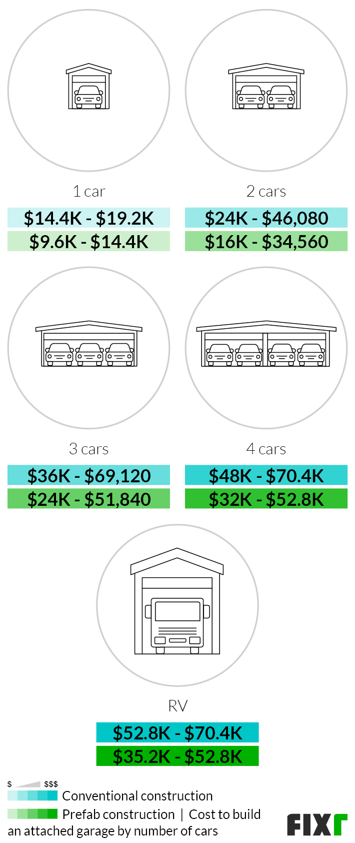 Cost to Build a 1, 2, 3, 4-Car, and RV Conventional and Prefab Attached Garage (mobile)