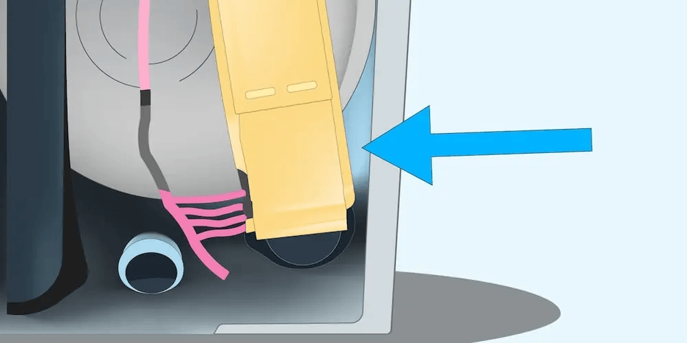 Once you’ve removed the front panel, you’ll need to remove the belt from the motor pulley system. Accessibility can be tricky, but you can support the drum with your shoulder and push the idler down or to the right to loosen the tension of the belt. Then, you’ll be able to remove the belt off the motor which will allow you to also remove the drum and the idler pulley.