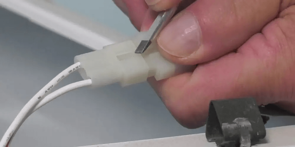 Next, use your putty knife to release the locking tabs on both sides of the door switch until you can disconnect it.